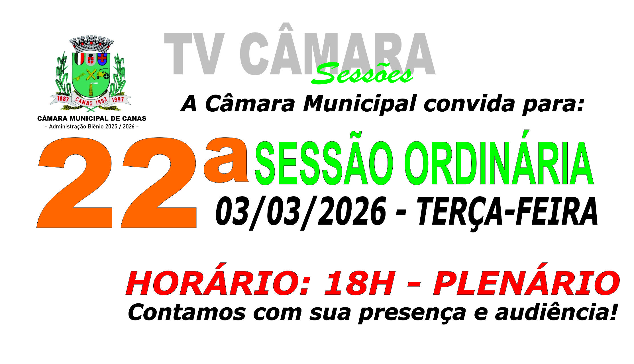 Transmissão ao vivo das sessões legislativas, confira nossa agenda.