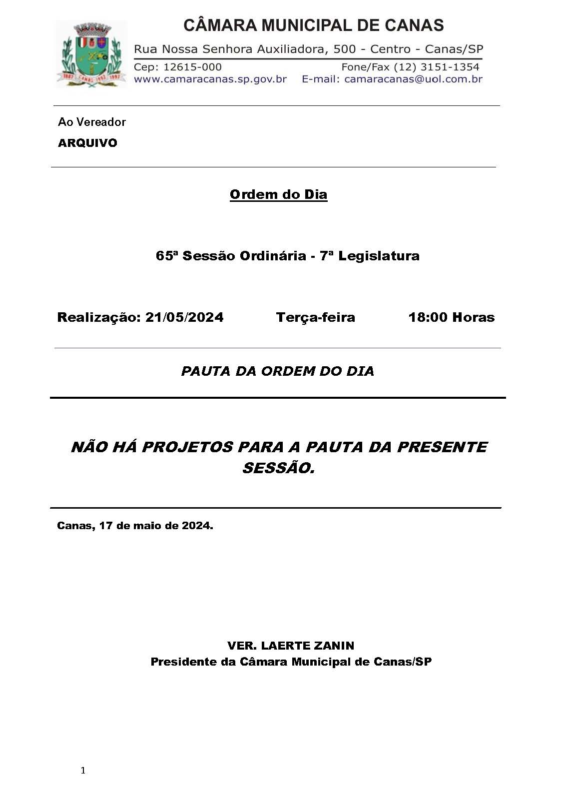65ª Sessão Ordinária